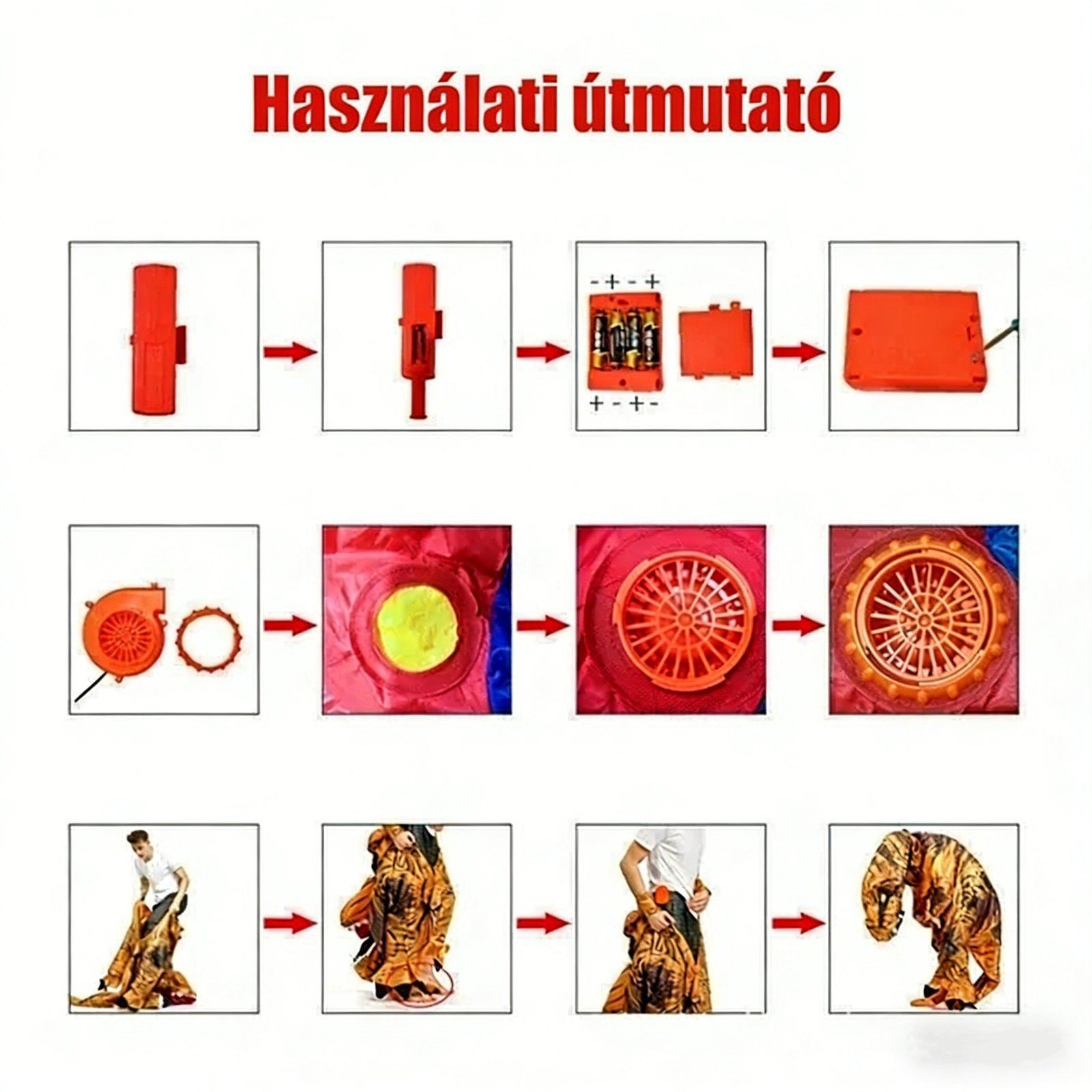 Gyerek Halloween jelmez Alien Pick Me Up szörnyeteg felfújható ruhák Ez a jelmez 100% poliészterből készült, nem eldobható. Jól kötött, tartós és kényelmes. Még a forró nyárban sem okoz kellemetlenséget a testnek. Ezt a zöld ufó jelmezt viselheted társaságban, bárokban, klubokban, táncos bulikban, parkokban, tévéműsorokban, szupermarketláncokon, szállodaláncokon, éves rendezvényeken, karneválokon, megnyitókon, esküvőkön. Neked kell lángra lobbantanod az erdőt. Gyerek jelmez: 1,0-1,5 m magasságig alkalmas. Gyorsan felfújható 90 másodperc alatt, a 9000 fordulat/perc fordulatszámú ventilátor teljesen felfújva tartja a jelmezt. Csomagolási részletek: 1 darab jelmez. 1 darab ventilátor. 1 darab elemtartó. 1 darab USB port a külső akkumulátor használatához. Az elemek és a külső akkumulátor nem tartozékok, megvásárolhatók a helyi üzletben. Megjegyzések: Csak kézzel mosható hideg vízben. Nem szabad centrifugálni, nem szabad fehéríteni, nem szabad vasalni.