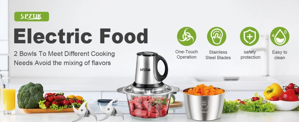 Este SPZTJK robot de corte es una maravilla! Dos cuencos de acero inoxidable y vidrio, perfecto para picar ajo y verduras en segundos.