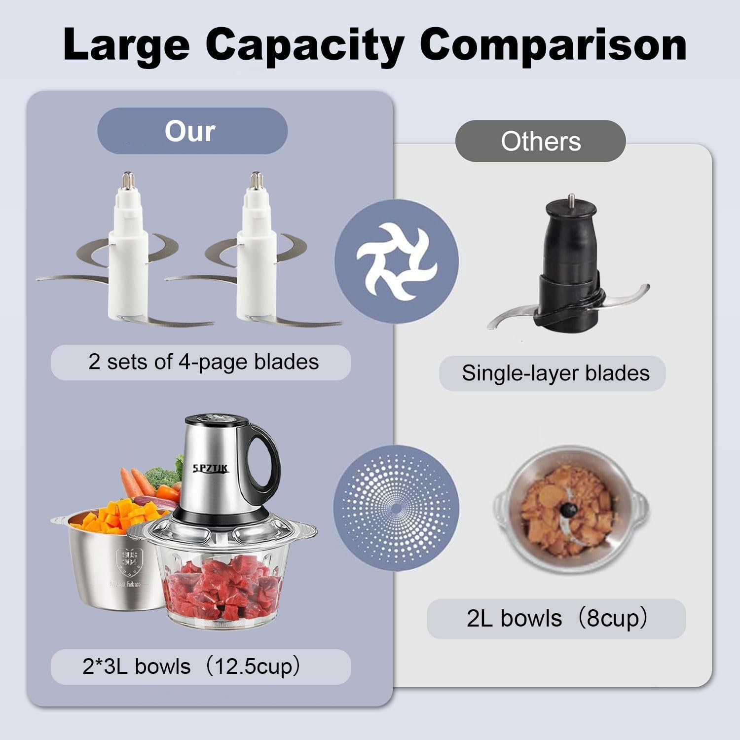Este SPZTJK robot de corte es una maravilla! Dos cuencos de acero inoxidable y vidrio, perfecto para picar ajo y verduras en segundos.
