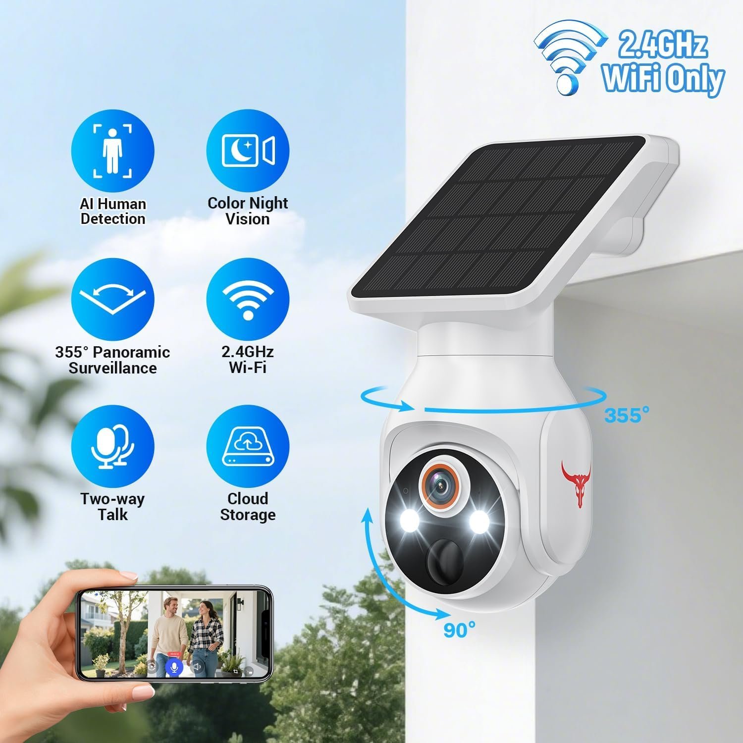 C¨¢mara de seguridad solar inal¨¢mbrica: F¨¢cil de instalar sin cables ni electricidad.